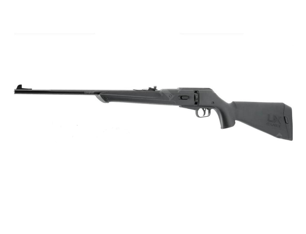 Dinamica, precisa e leggera: queste caratteristiche rendono l'UX Canex la scelta migliore per avvicinarsi nell'affascinante mondo delle carabine ad aria compressa a CO2. L'UX Canex raggiunge questo obiettivo combinando una tecnologia affidabile con materiali durevoli e leggeri e caratteristiche pratiche. L'azionamento a CO2 è costituito da due capsule di CO2 da 12 g posizionate nel calcio insieme allo strumento di perforazione, che forniscono un'energia alla volata costante di < 7,5 joule. Un caricatore rotante da 10 colpi per pallini da 4,5 mm (.177), combinato con la canna rigata lunga quasi 540 mm, garantisce un'elevata precisione. Il grilletto Double-Action Only consente di sparare rapidamente, perché non è necessario armare manualmente il fucile tra uno sparo e l'altro. L'UX Canex rimane piacevolmente leggero, pesando solo 1740 g, grazie al suo calcio in polimero resistente. La tacca di mira posteriore è regolabile in elevazione e la sicura a pulsante impedisce lo sparo accidentale.